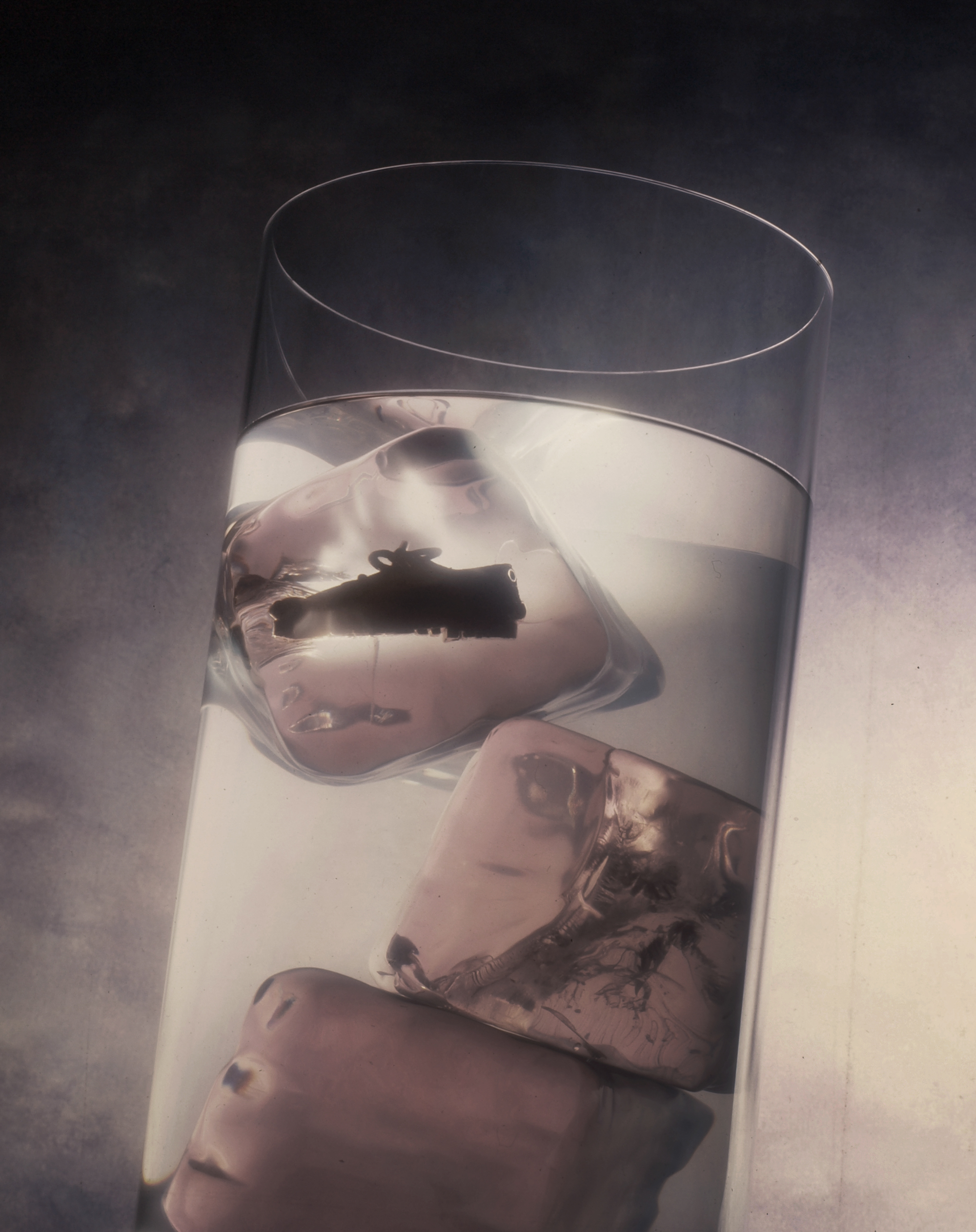 Deze foto was een succes. Al gauw kwam er een tweede idee. Een schoen die in een ijsblokje gevangen was.