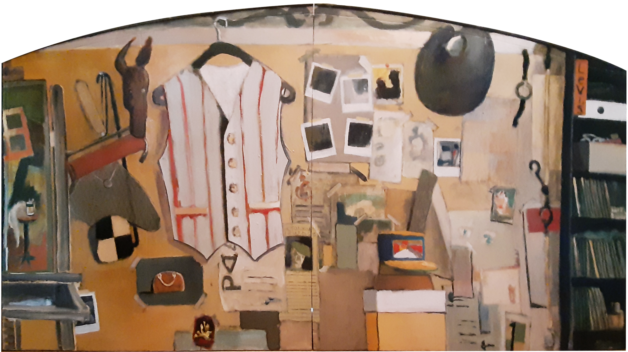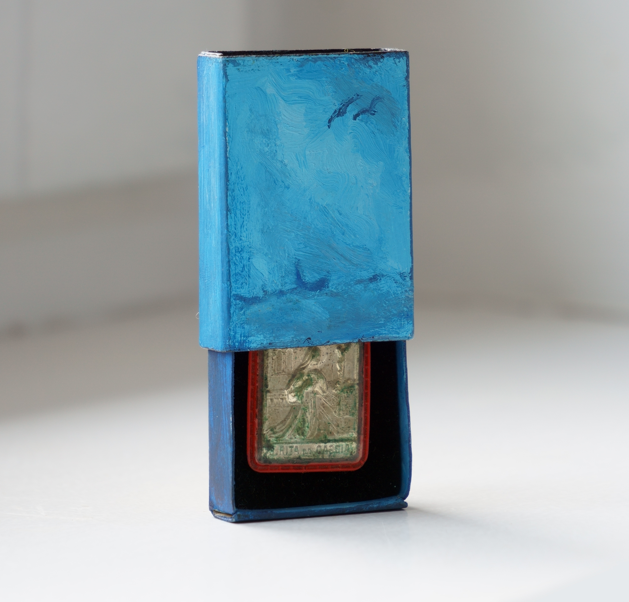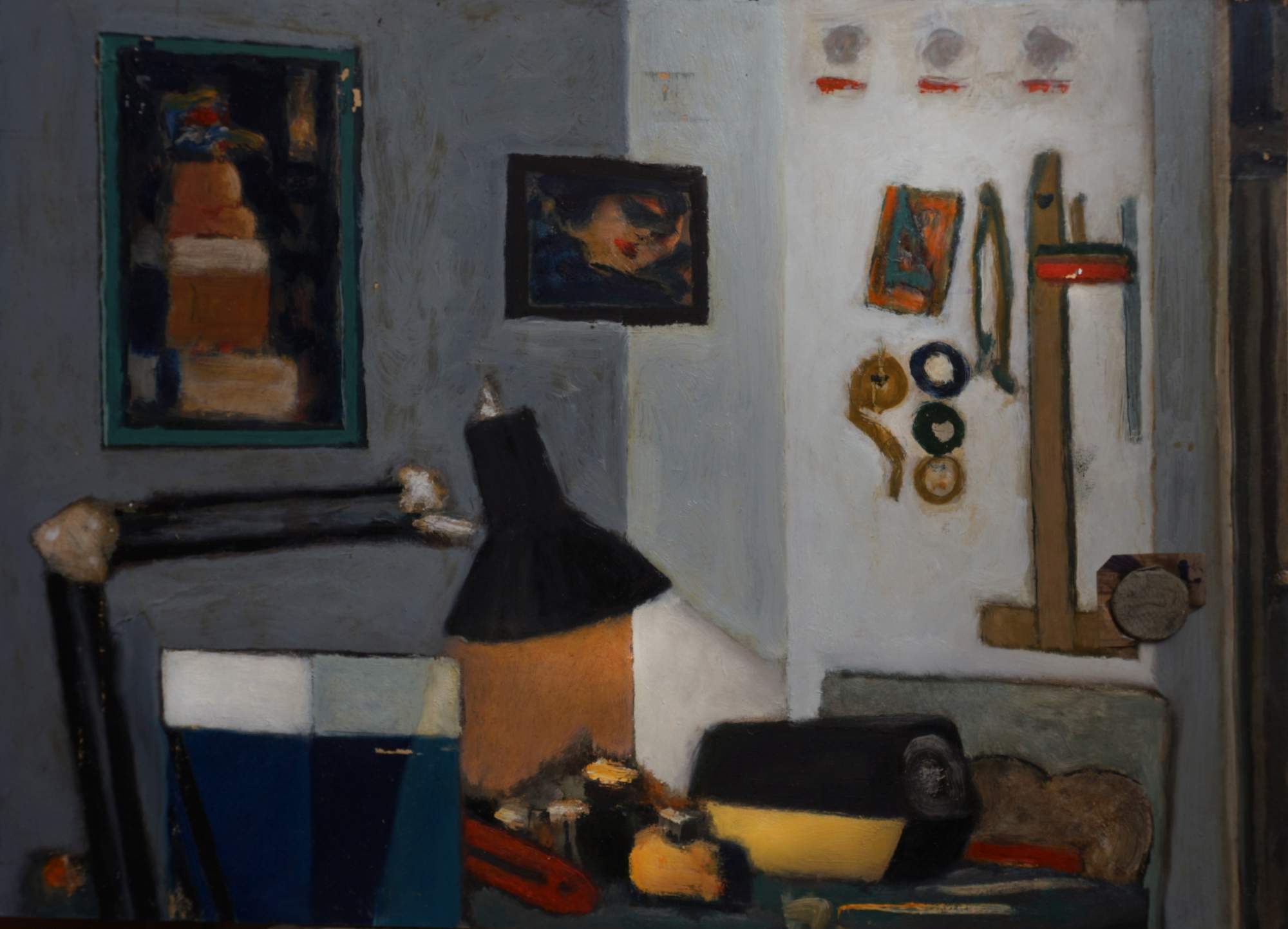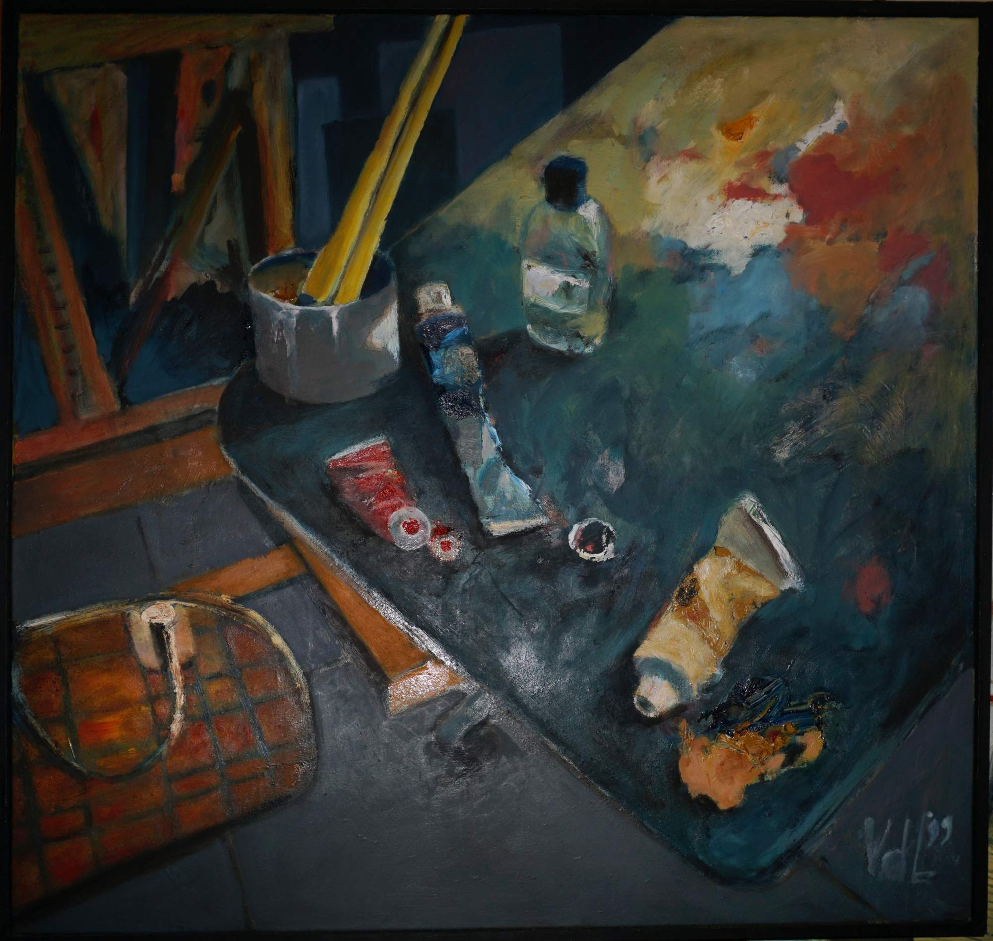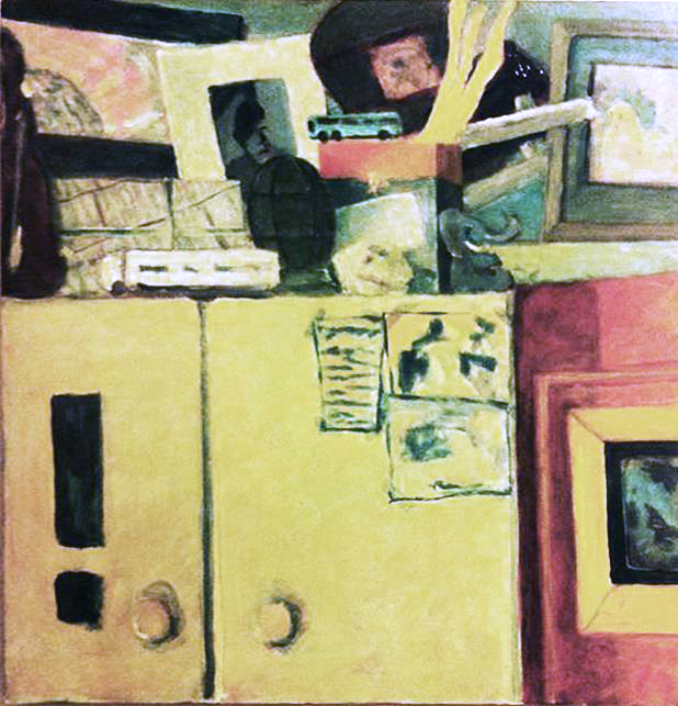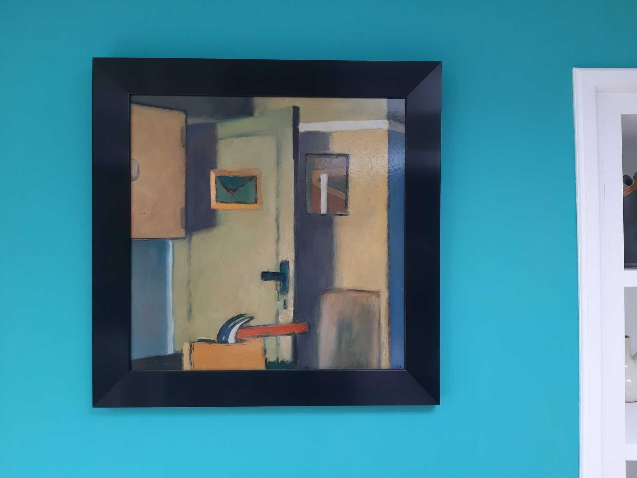 Stilleven met dozen en pet, 40x52cm, particuliere verzameling