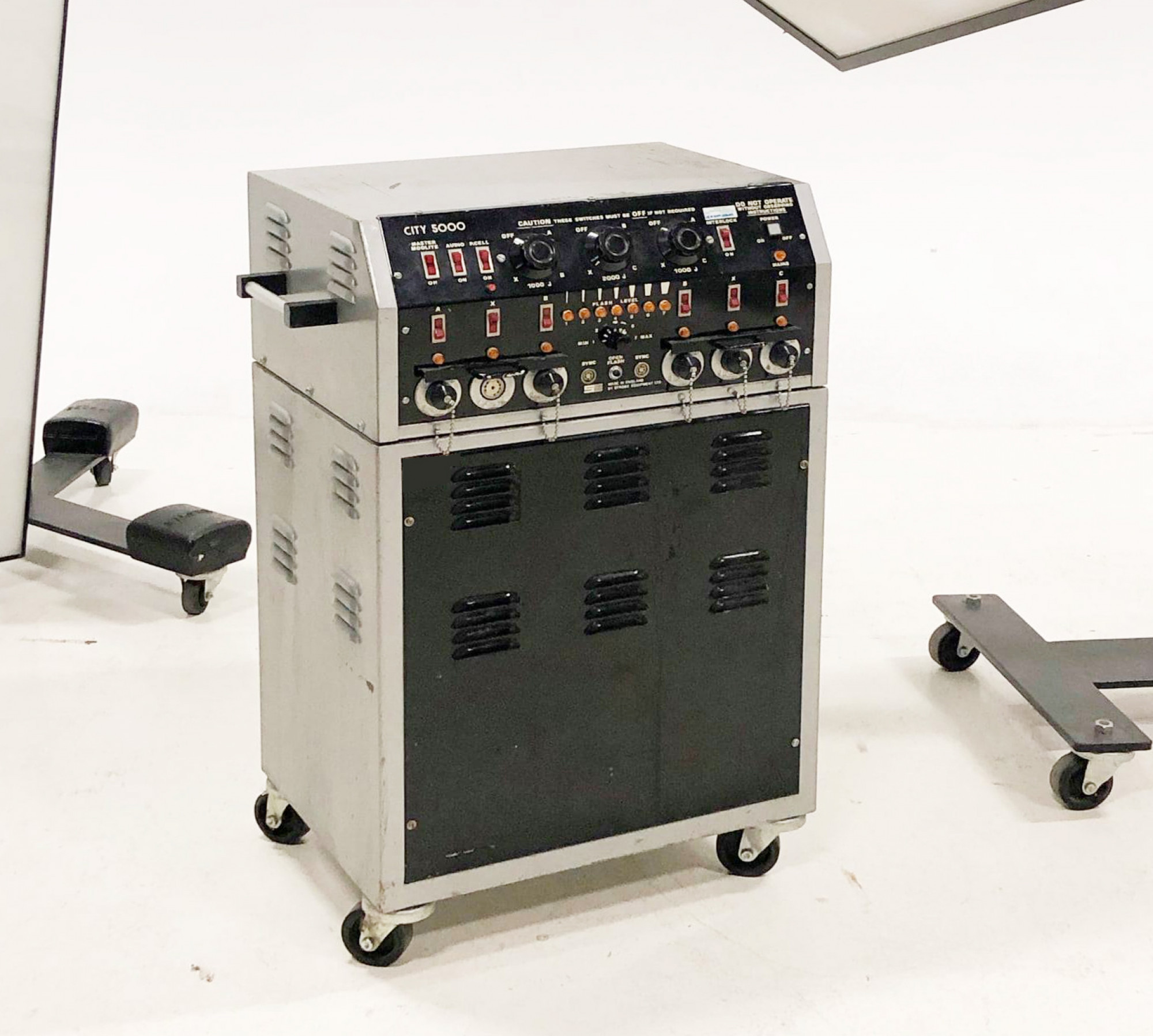 ** Ik had op dat moment een Strobe 5000WS flitsaggregaat. Daar komt een enorme hoeveelheid licht uit. Het was een ding waar je ontzag voor moest hebben. Het had grote knoppen waarmee de capaciteit verdeeld kon worden over verschillende uitgangen en er waren allerlei handelingen die je moest verrichten om er veilig mee te werken. Het ampèrage dat door de kabels heen ging was heel hoog. Er ging een verhaal over een fotograaf die een keukentrap op de kabel had staan waar het rubbertje niet meer onder zat. Hij stond op de trap en was op slag dood toen de flitser afging. Of het echt gebeurd is weet ik niet maar je ging er daardoor wel voorzichtig mee om.
