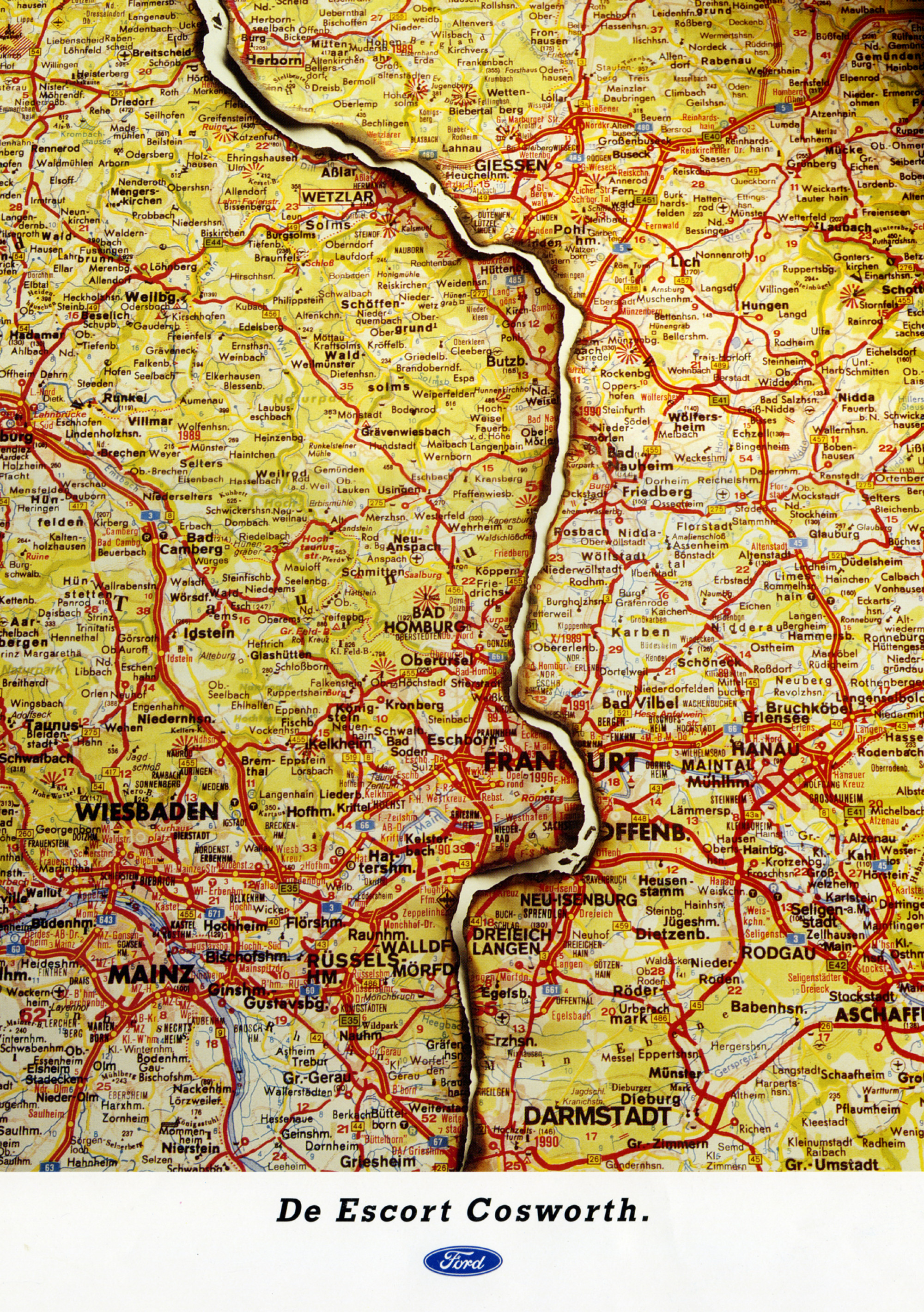 Op dit moment kun je van iedere wegenkaart een mooie vector downloaden. Deze kun je in programma's als Adobe Illustrator bewerken tot je precies hebt wat je nodig hebt en vervolgens printen op de maat die jou voor de fotografie het beste uitkomt. Dat was in 1995 nog niet mogelijk. Arjan had wel uitgezocht waar de auto gereden moest hebben en ontvouwde een wegenkaart op de werktafel.