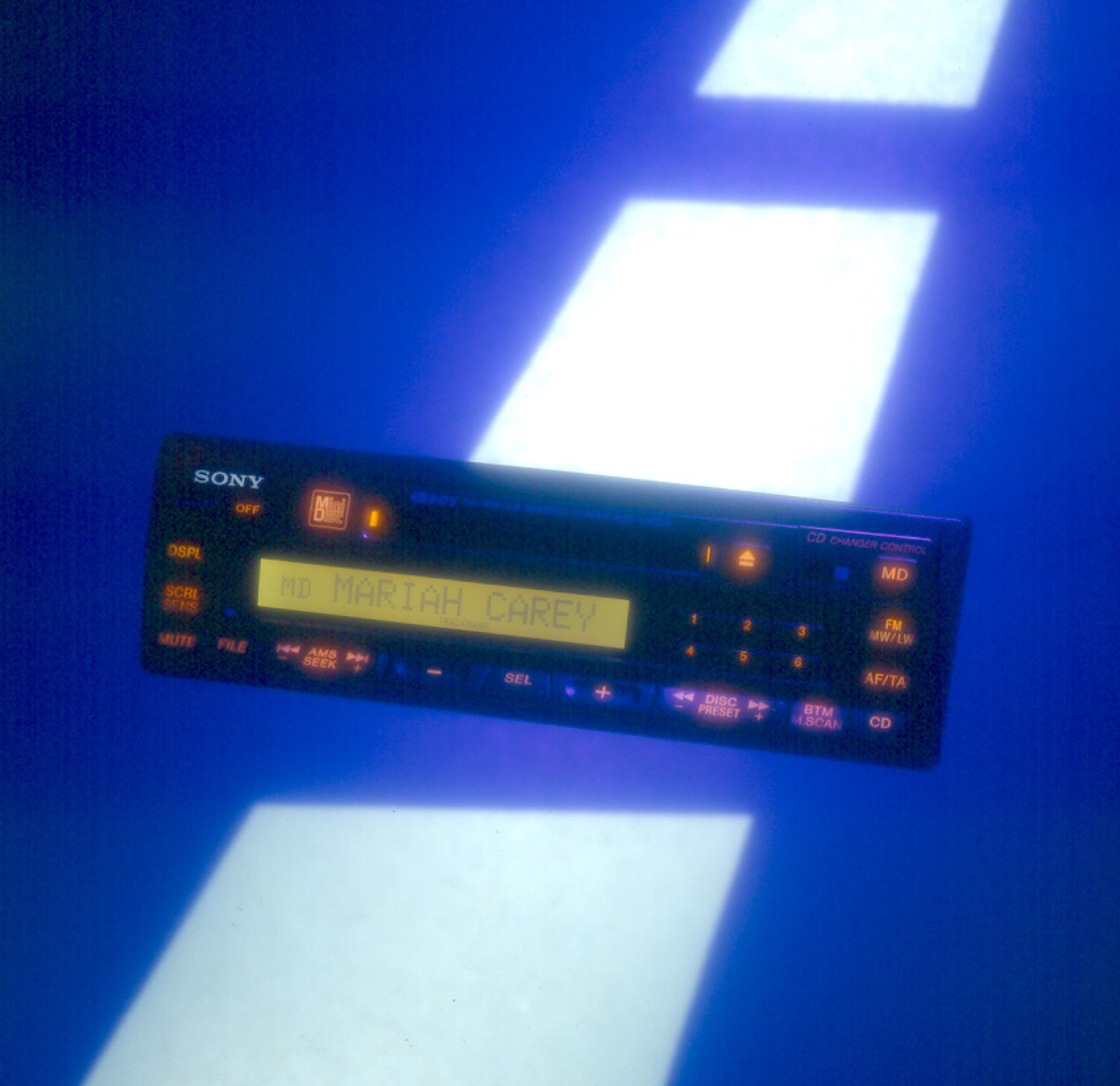 Artdirector Robin Blitzblum had het werk gezien dat we op de vlakke opnametafel hadden gemaakt en wilde die techniek toepassen in de advertentiebeelden. In plaats van dromerige beelden die we eerder met de poppetjes hadden gemaakt had hij het idee om met gekleurde folies de suggestie te wekken van een drie dimensionaal beeld. Daar bovenop zou dan het daadwerkelijke product in de vrije ruimte hangen. De walkman was daarbij geen probleem, die was licht en handzaam. Maar de autoradio (met de naam Mariah Carey verlicht op het scherm) werd al lastiger. De stereo installatie maakte de opdracht tot een uitdaging.
