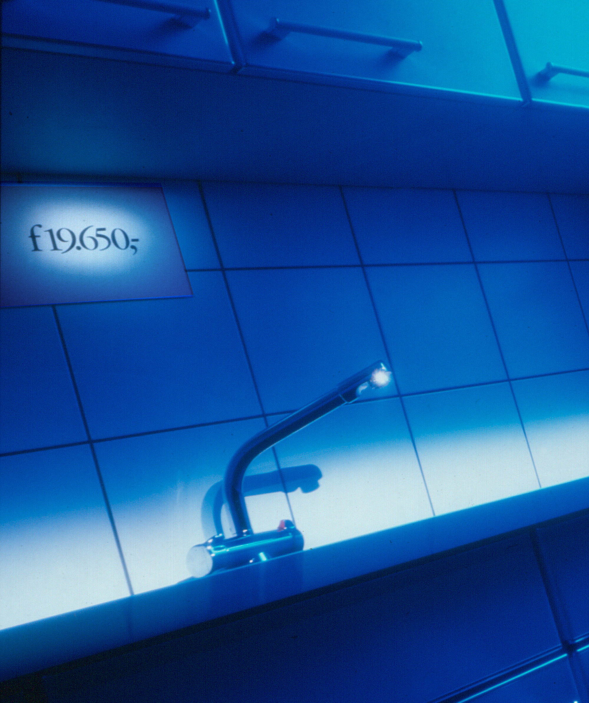 De keuken moest ook worden opgebouwd in de studio. Dat nam meer tijd dan gedacht. Keukenkastjes moesten op de millimeter worden afgehangen, dat waren ze niet gewend. Steeds als ik een polaroid maakte bleek een van de deurtjes toch nog niet exact goed te hangen. Nu kun je je dat niet meer voorstellen maar er was nog geen Photoshop om het even te corrigeren.