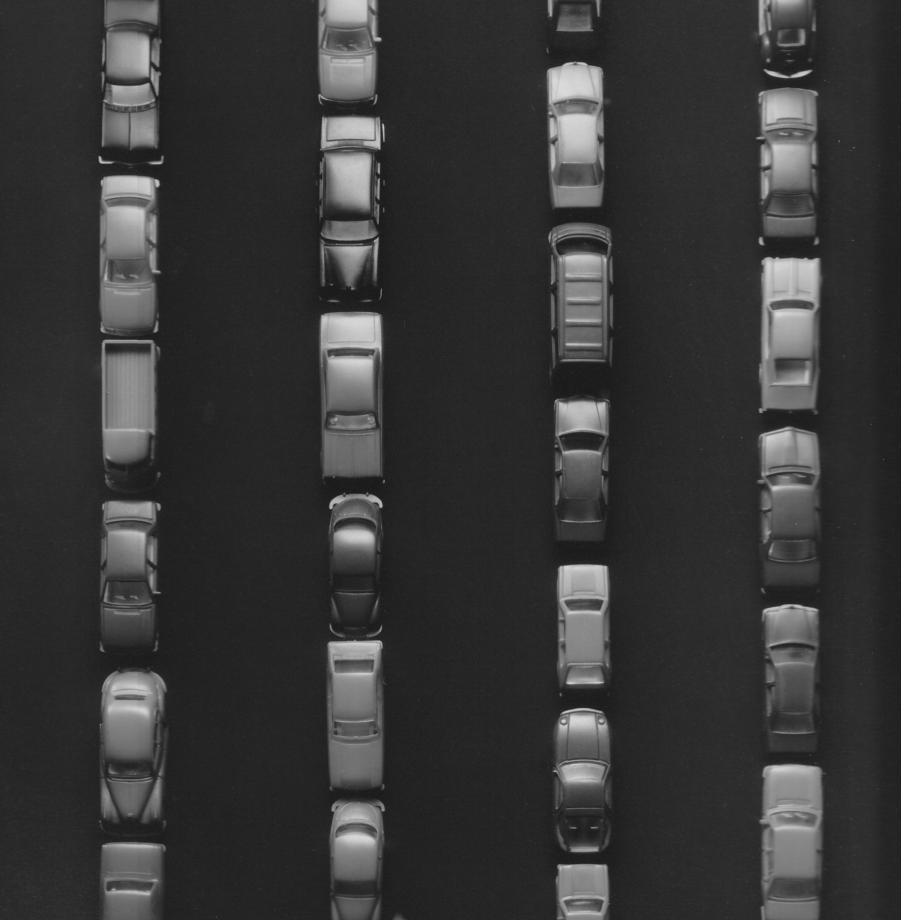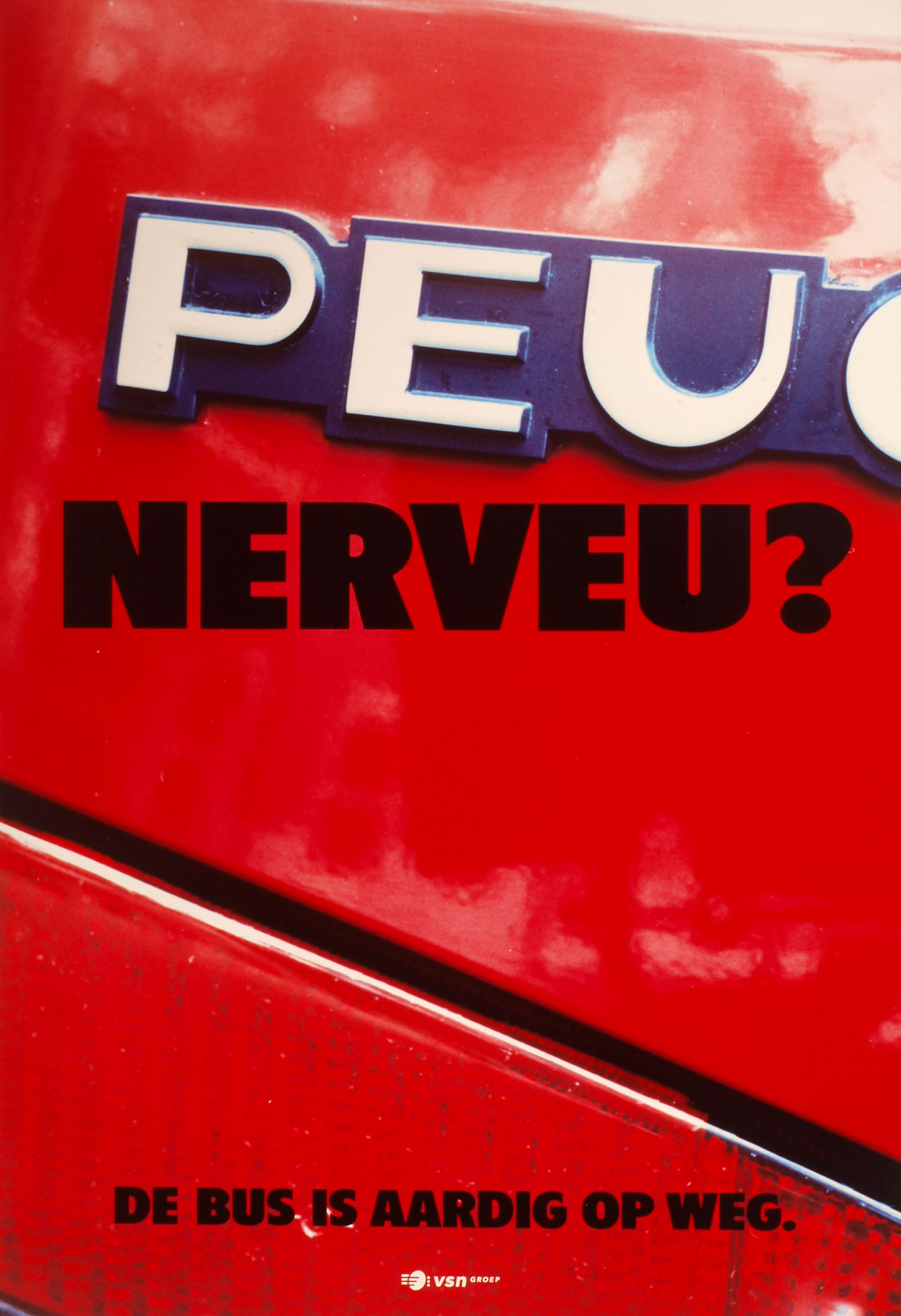 De derde campagne draaide om het spelen met merknamen van auto's "Peu Nerveu" met het logo van Peugeot en "De weg weer vol" met het logo van Volvo. De foto's zijn gemaakt op locatie. Het was een druilerige dag. We gingen vroeg op pad om auto’s te fotograferen. Maar op de een of andere manier was het allemaal te schoon. We besloten naar De Liede te rijden. Er waren allerlei soorten schroothopen. De vier foto's hebben we daar zonder verdere apparatuur gemaakt. Alleen het beschikbare licht, een paar filmcassettes, een paar dozen met polaroids en natuurlijk een 4x5-inch technische camera.