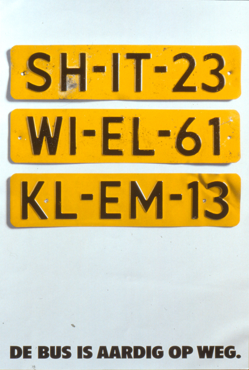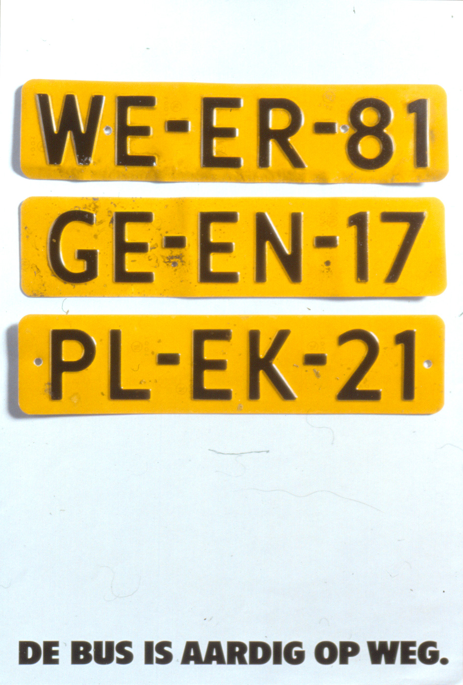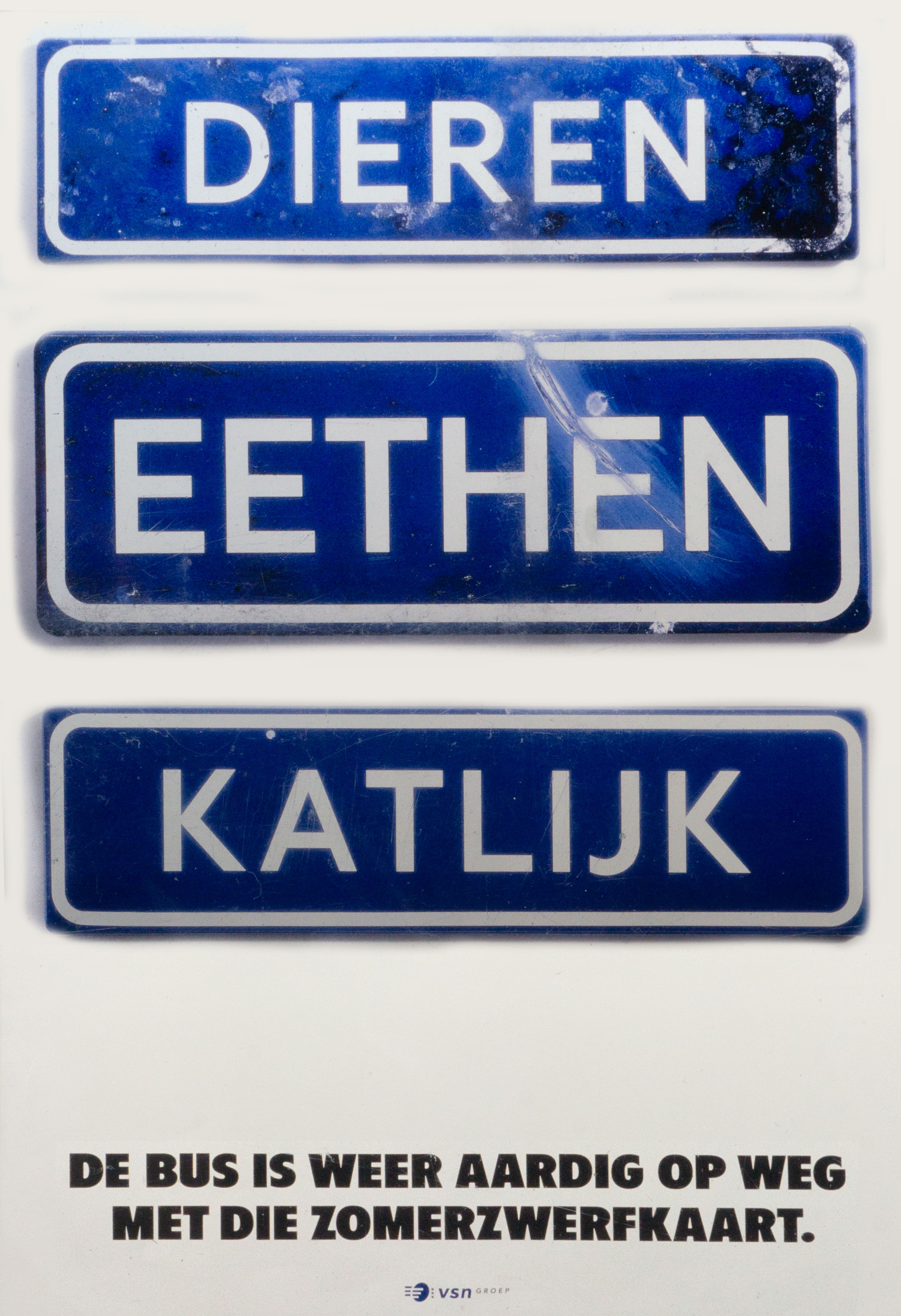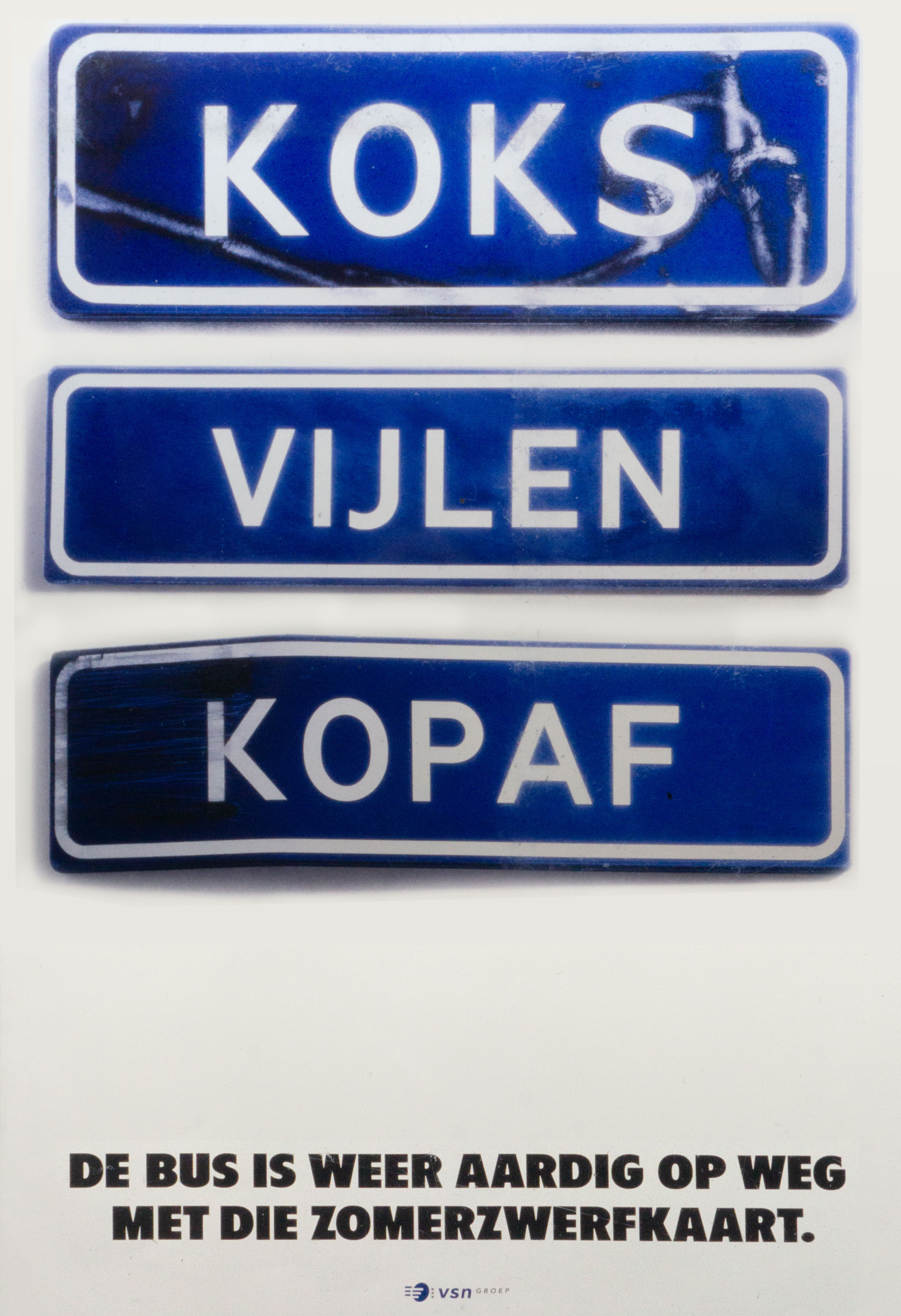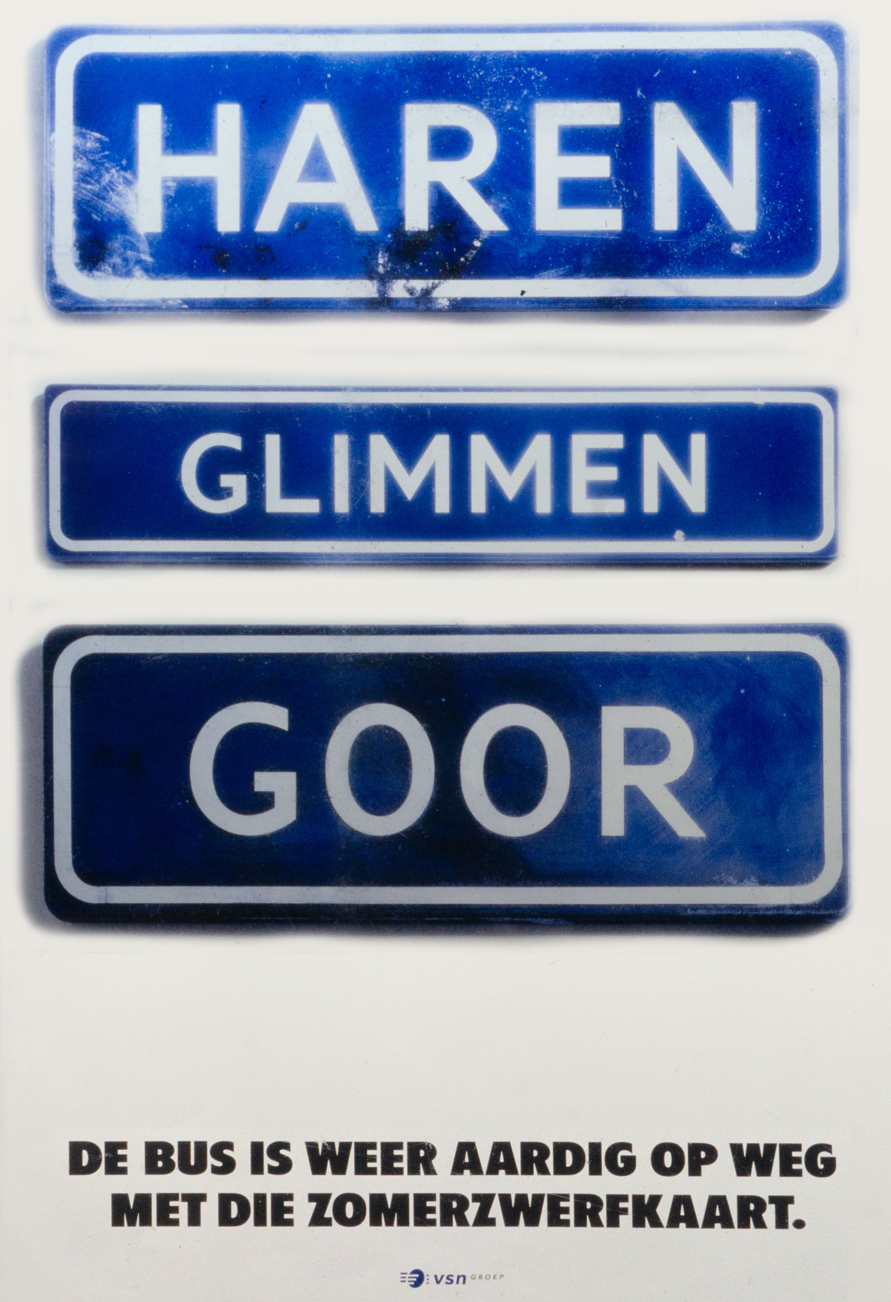 De tweede campagne was gebaseerd op vreemde maar bestaande officiele Nederlandse plaatsnamen. "Heel Nederland Hapert" en "Haaren Glimmen Goor" zijn er daar twee van. De campagne werd op abri's gepubliceerd maar ook op een streekbus. De borden werden gemaakt door modelmaker Gerard Deibel die ze ook zo behandelde dat ze gebruikt leken. In één daarvan zat zelfs een heus kogelgat. Beide campagnes zij gefotografeerd in mijn studio aan de Willemsstraat in Amsterdam.
