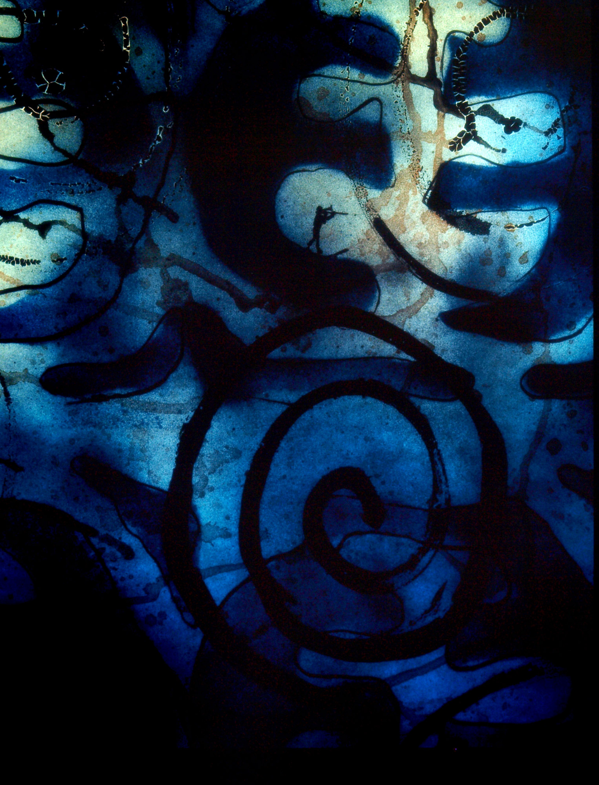 Een van de eerste foto's die we maakten was die van de gymnasiasten. Drie poppetjes met elk een ring boven het hoofd. Gefotografeerd op met ecoline gekleurd rijstpapier dat voorzien is van een tekening met oostindische inkt.